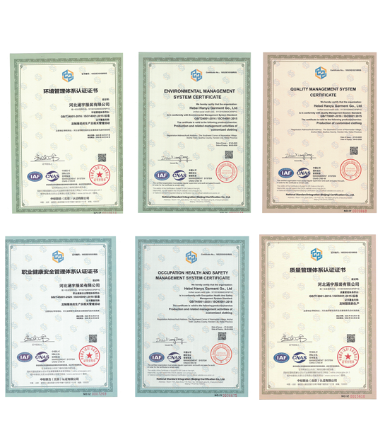 河北涵宇服装有限公司是一家拥有超过15年工作服和休闲服生产经验的专业供应商,共有员工300人,还拥有BSCI认证、OEKO-TEX认证、amofori认证等认证,可以提供高品质的产品。我们的主要产品是各种耐用的现代工作服、功能性户外服装、休闲服装和童装等,主要出口到欧洲、美国、加拿大、俄罗斯、中东和亚洲等地区,我们始终坚持“产品质量第一、设计领先、客户服务优先、真诚合作交流”的原则, 并一直以“绿...